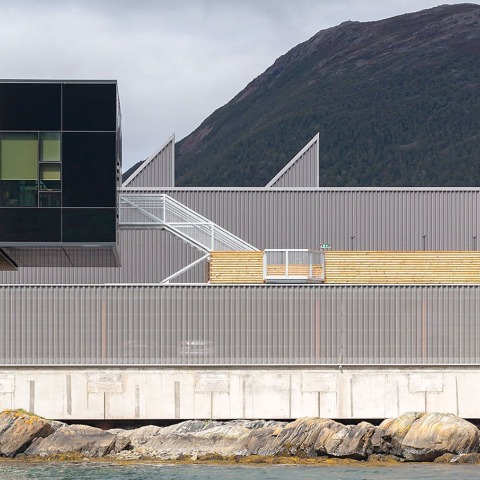 En nombre del armador Holmøy Maritime, Snøhetta ha diseñado el Área Industrial de Holmen, una instalación de pesca de 6,000 metros cuadrados altamente sofisticada y colorida situada en el lado este de Sortlandssundet en el archipiélago de Vesterålen en el norte de Noruega. Al reunir a todos los empleados e instalaciones, esta nueva y audaz instalación garantiza el éxito internacional continuo para la segunda industria más grande de Noruega: una industria con un valor de más de mil millones de dólares anuales.