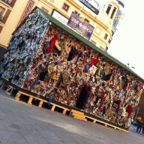 El equipo de Save the Beach y del artista alemán HA Shult ha estado todo el fin de semana trabajando para ponerlo en pie y todo el que pasa se para a contemplarlo. No es para menos, el hotel está hecho con miles de piezas diferentes de basura y puedes encontrar objetos muy singulares, desde la pierna de un maniquí a un caballito de cartón, lámparas, defensas de barcos, botellas de todo tipo, cuadros o un reloj de cuco. En total, HA Shult ha utilizado 12 toneladas de basura para construir el hotel.