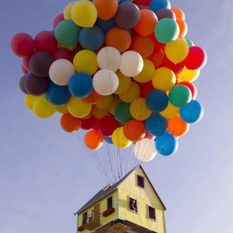Desde la cimentación hasta el balón más alto, desarrolla una altura de más de 10 pisos, con unos globos que inflados tienen una altura de 8 pies cuando están inflados. Los 300 globos con los que consiguieron echar a volar la casa establecieron un nuevo récord mundial al ser el mayor vuelo que se ha intentado de un grupo de globos.