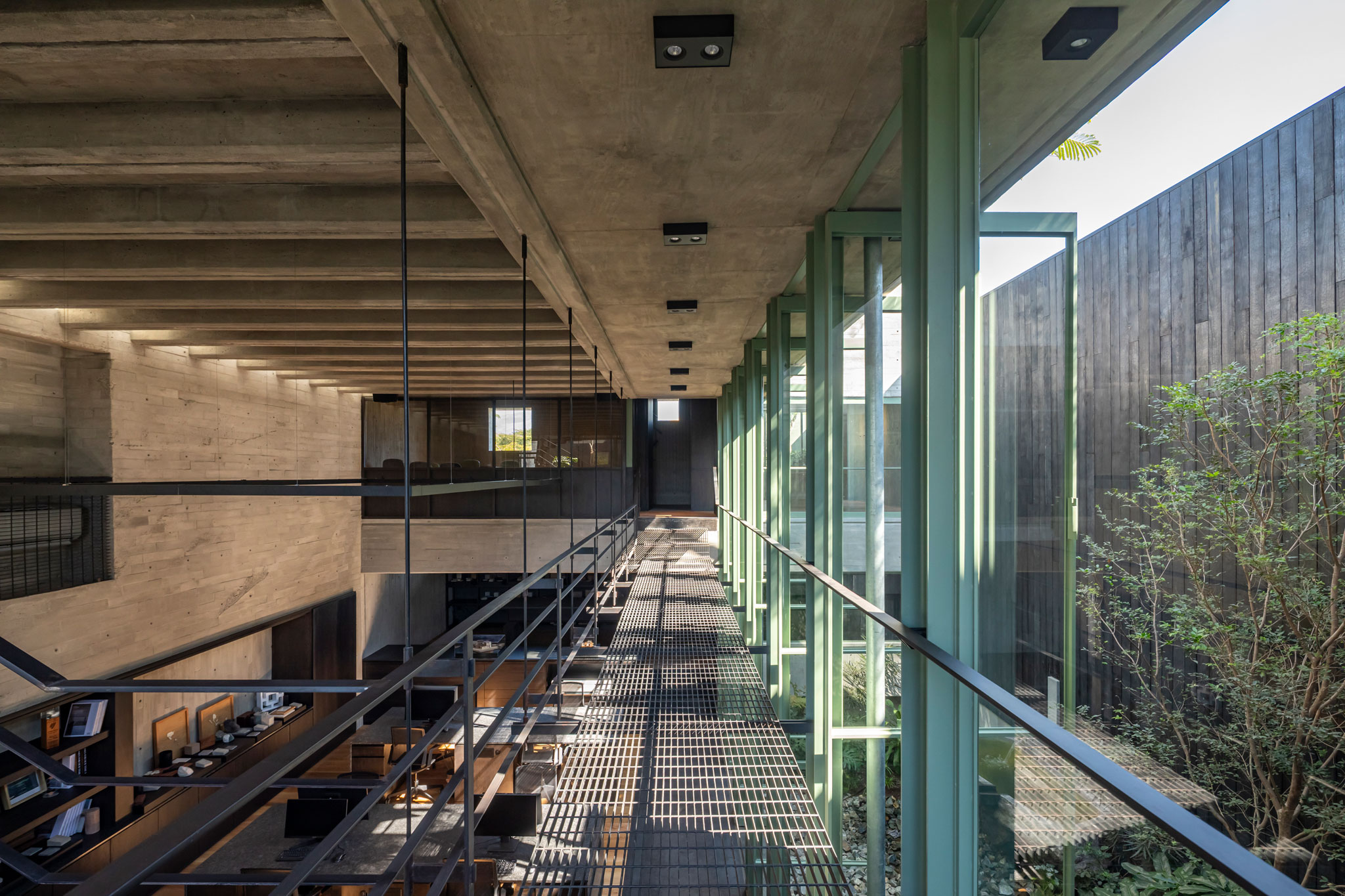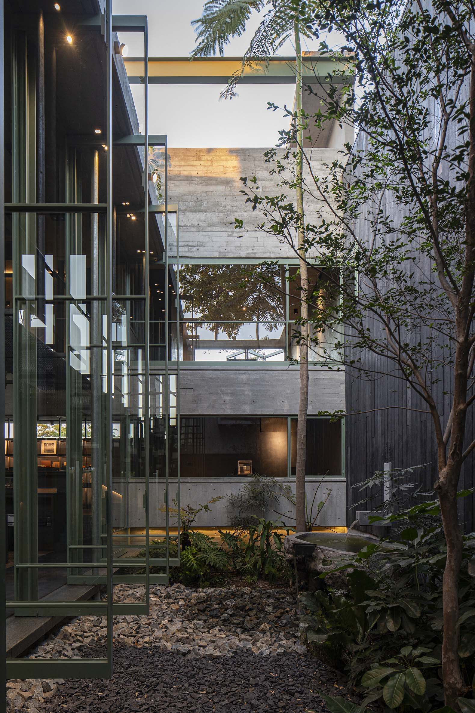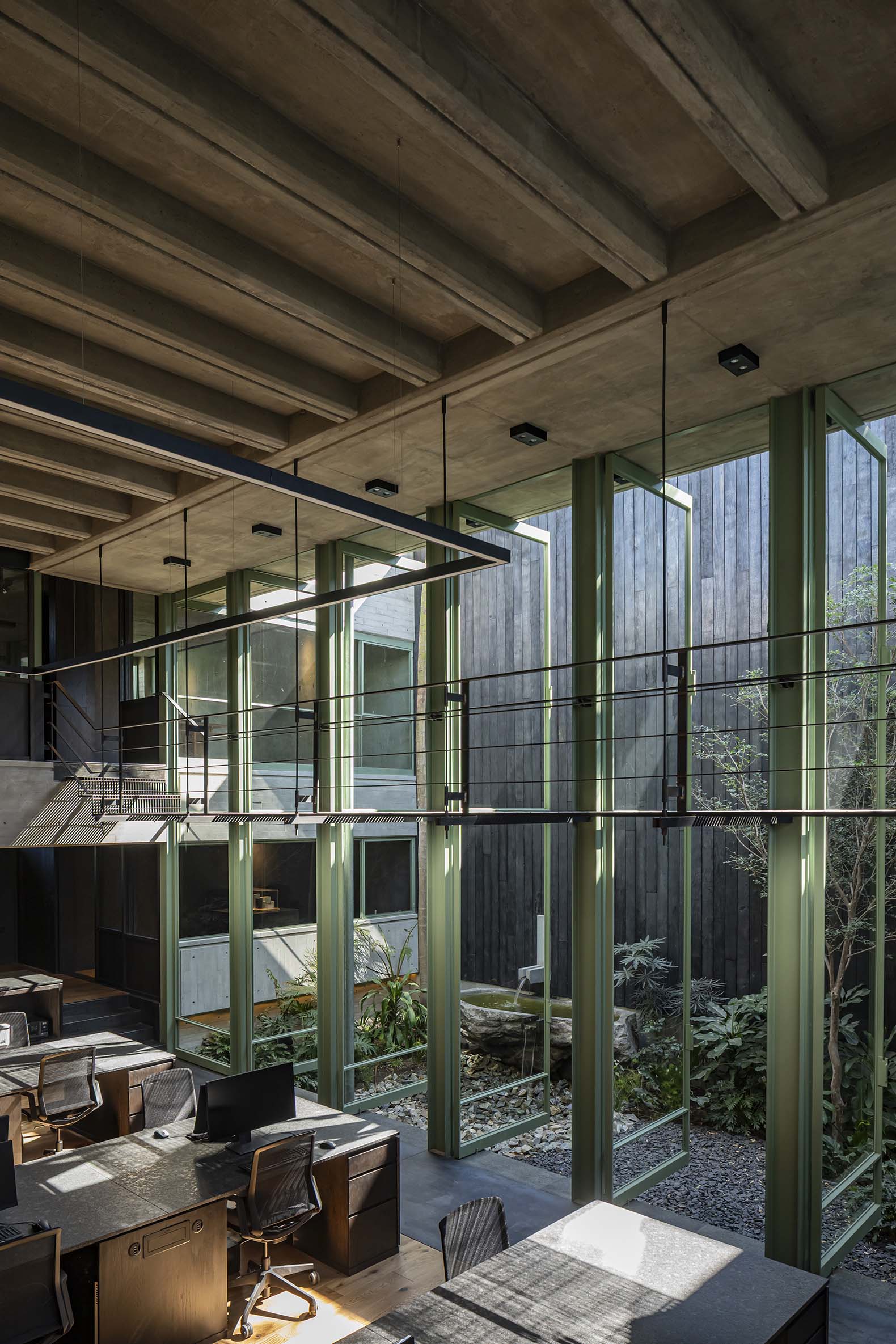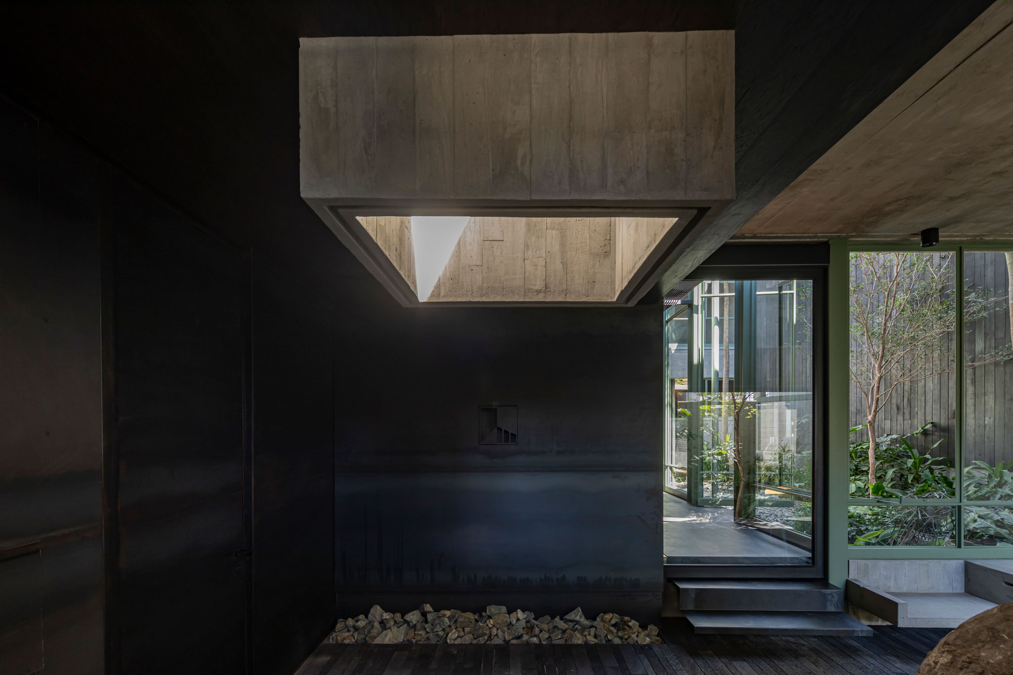 Esta obra es el resultado de integrar los elementos más representativos de nuestra arquitectura; una volumetría limpia y definida, materiales aparentes y expresivos, texturas que llaman a ser tocadas donde nos atrevimos a experimentar con diferentes materiales, naturales e industriales, como el uso de acero, concreto, la madera quemada y piedra entre muchos otros acabados que le imprimen un carácter único, personal y artístico, según el estilo del despacho.