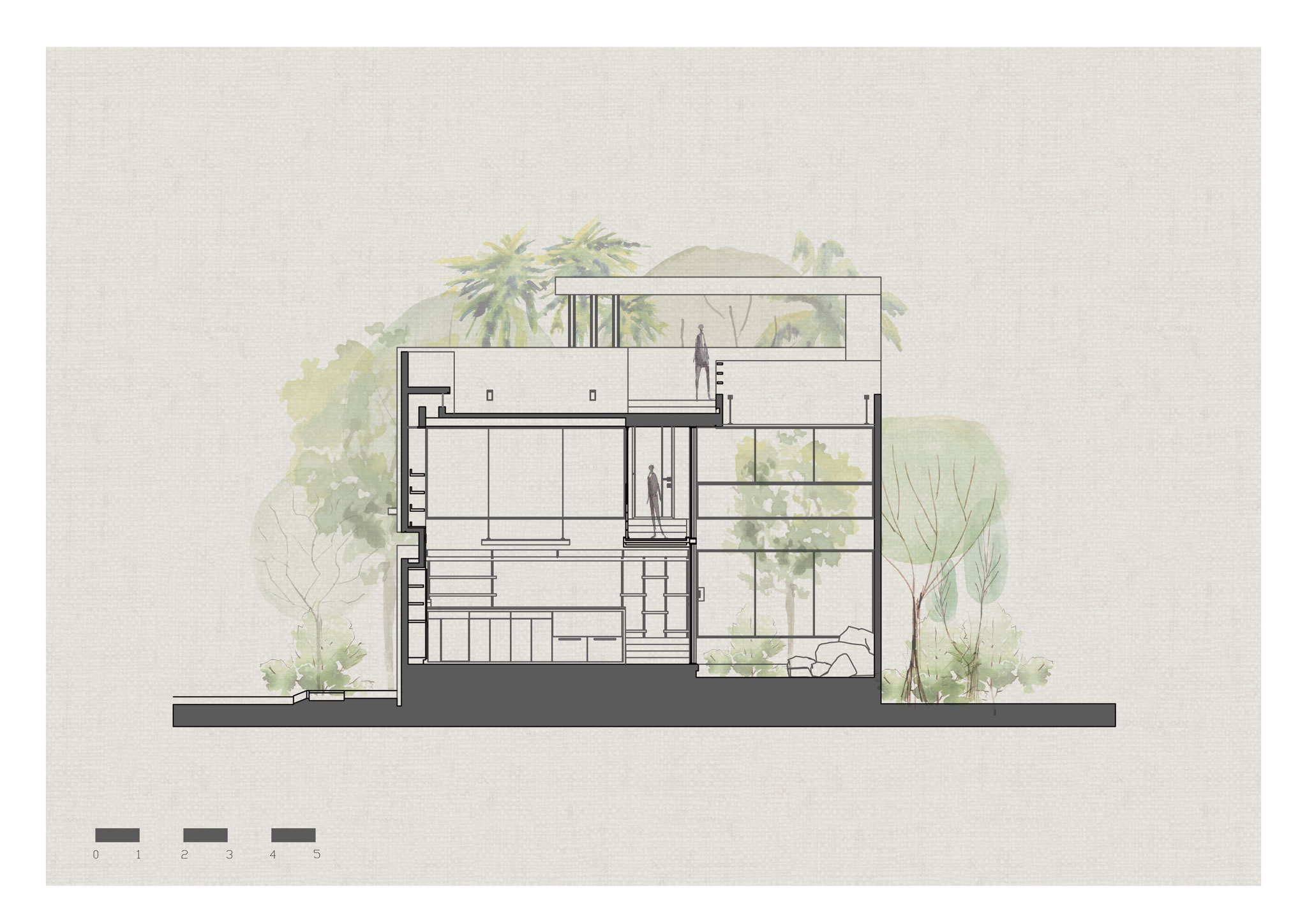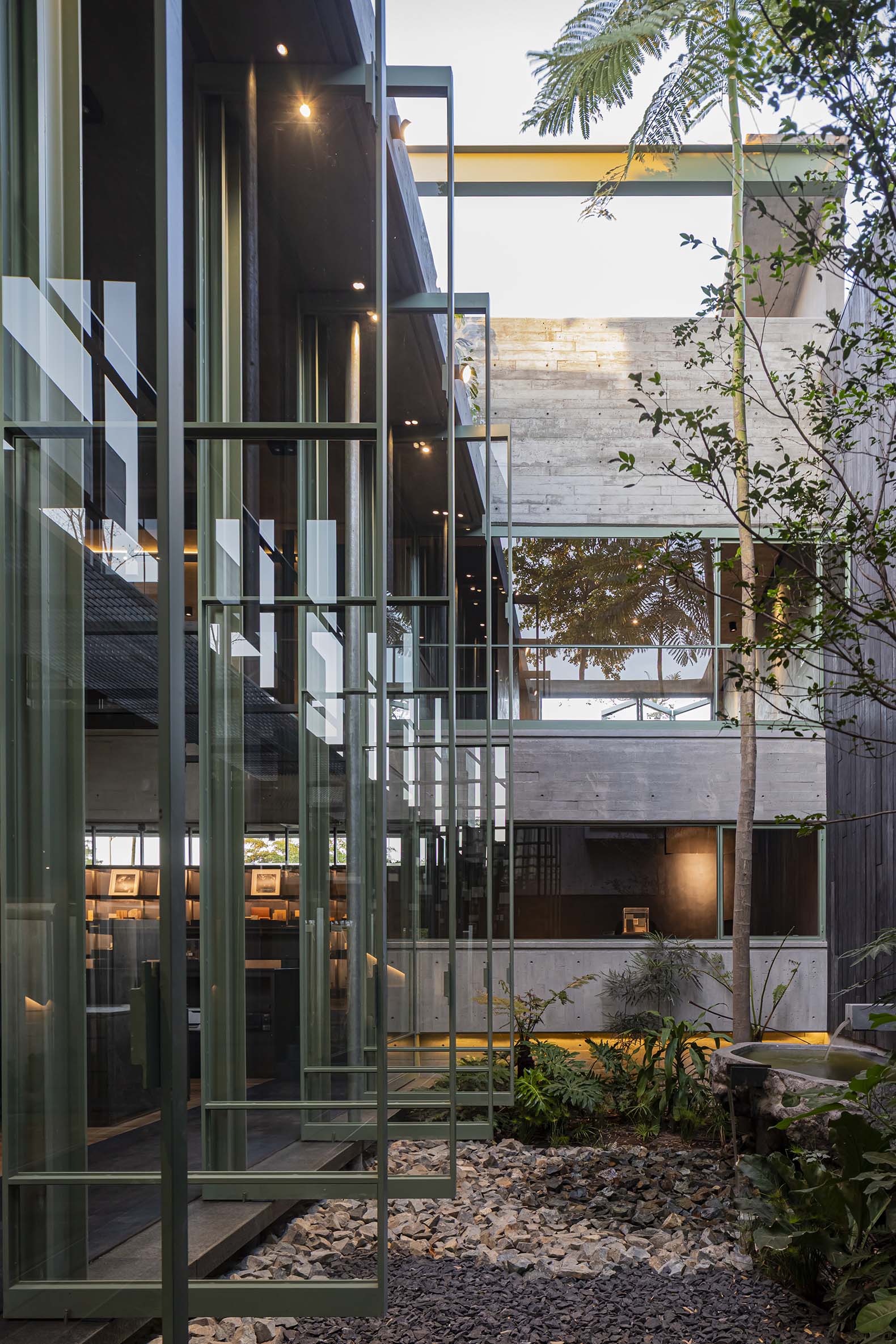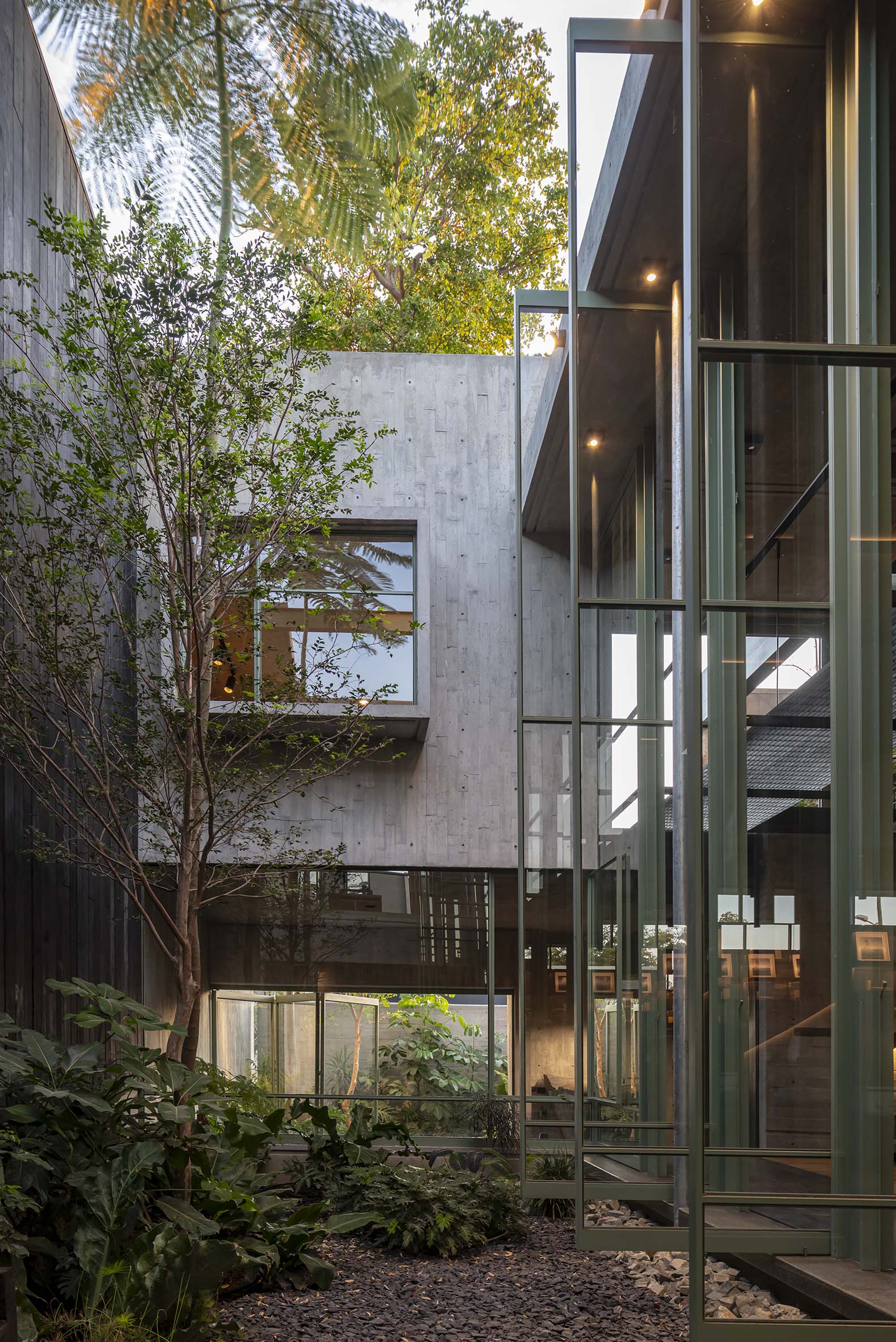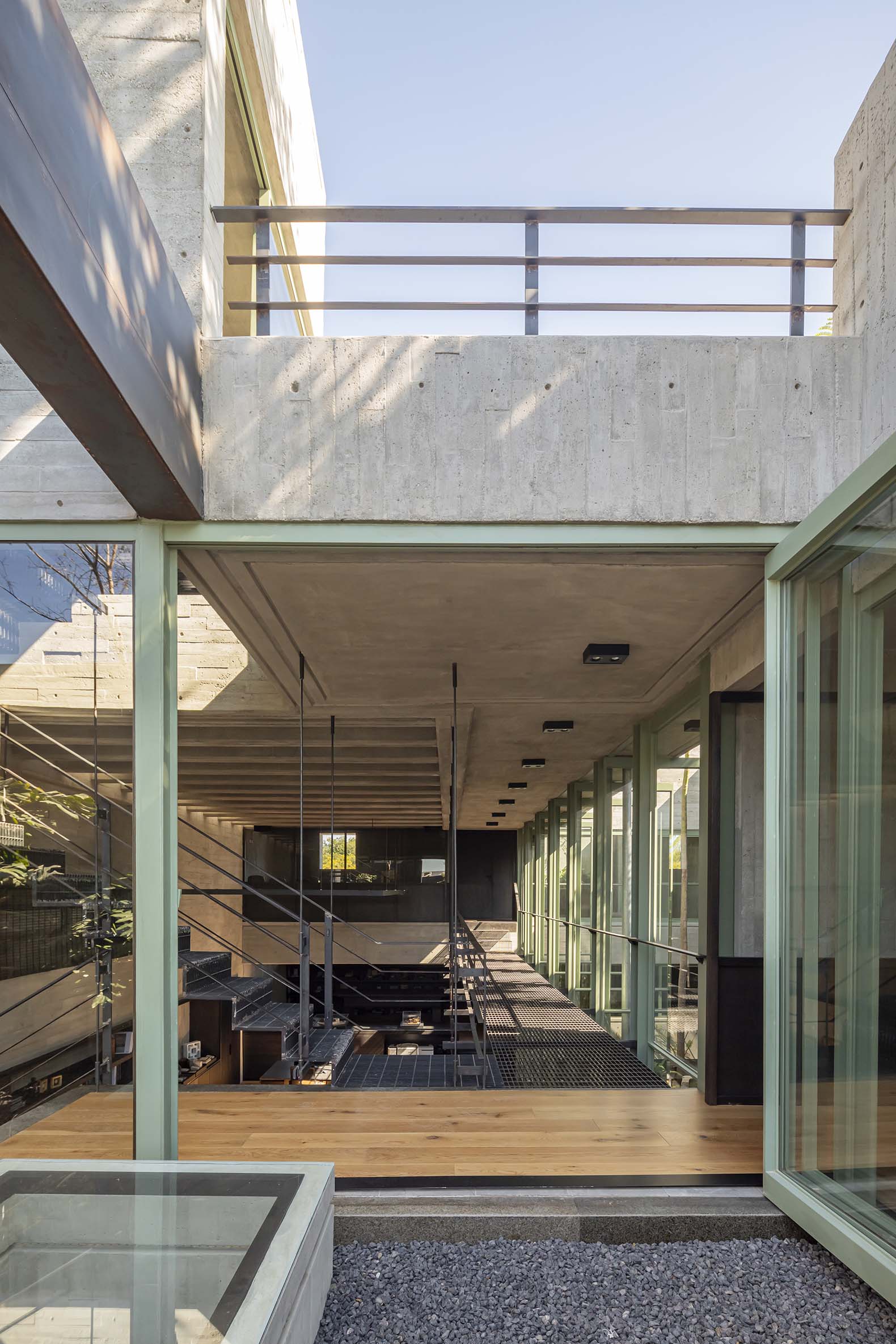 Esta obra es el resultado de integrar los elementos más representativos de nuestra arquitectura; una volumetría limpia y definida, materiales aparentes y expresivos, texturas que llaman a ser tocadas donde nos atrevimos a experimentar con diferentes materiales, naturales e industriales, como el uso de acero, concreto, la madera quemada y piedra entre muchos otros acabados que le imprimen un carácter único, personal y artístico, según el estilo del despacho.