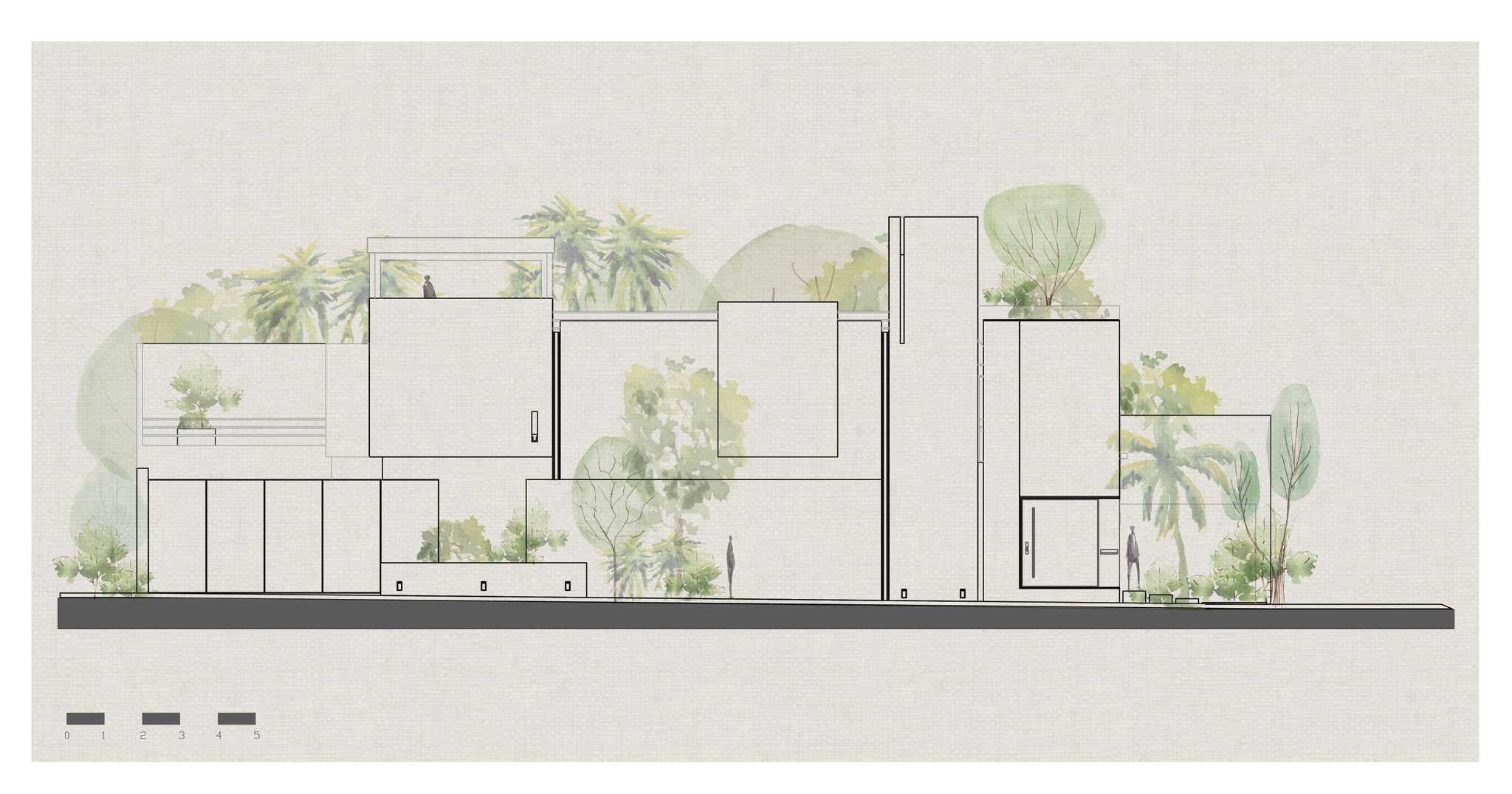 Se establecieron patios interiores para conseguir una arquitectura que convive con lo natural, espacios que rompen la monotonía con sus juegos de niveles, luces y sombras; todo esto con la intención de estimular la imaginación y creatividad, creando ambientes de relajación e inspiradores.
