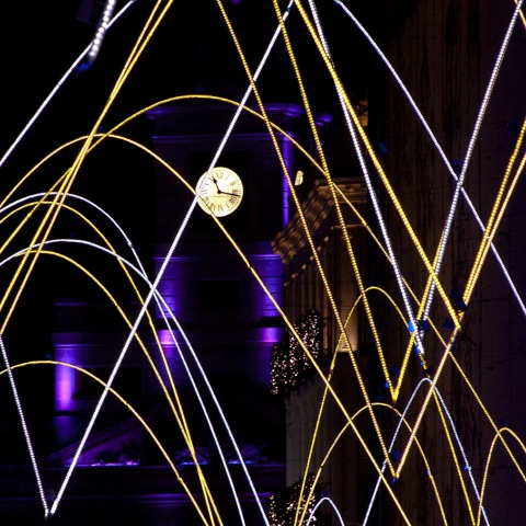 La tradición del cambio de año en España se celebra tomando doce uvas, al ritmo de las doce campanadas que marca el reloj de Sol. Como homenaje al siglo y medio que cumple este símbolo de la Navidad española, con cada cambio de hora toda la instalación recogerá su eco, amplificándolo en forma de latidos de luz a lo largo de toda la calle Preciados.