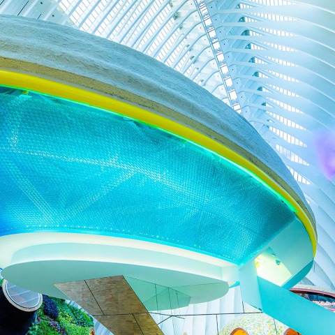 El proyecto de Enric Ruiz-Geli crea un mundo de células vivas en el interior del edificio. El arquitecto lo describe como un paisaje conformado por espacios interconectados en un ecosistema protector.