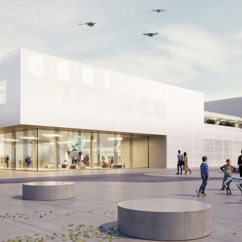 La idea subyacente del nuevo edificio propuesto es satisfacer las necesidades del sofisticado entorno docente de la carrera de robótica y, al mismo tiempo, reunir a casi 350 estudiantes y empleados en un centro de colaboración impulsado por la comunicación. Situado en la parte oriental del campus, se accederá al CERI a través de un acogedor patio con «islas» plantadas que conecta con la entrada en la esquina del edificio. En su corazón se encuentra la zona de producción, abierta y situada en el centro, que se extiende desde la planta baja hasta el tejado. Su estructura diáfana permite acceder sin obstáculos a las zonas de producción y desarrollo.
