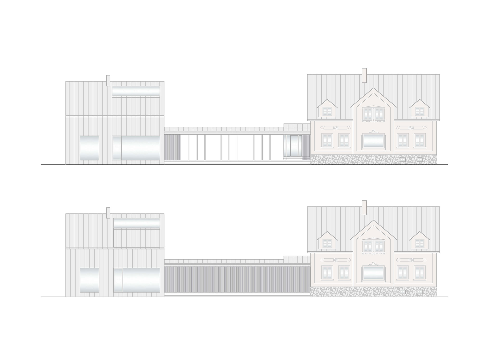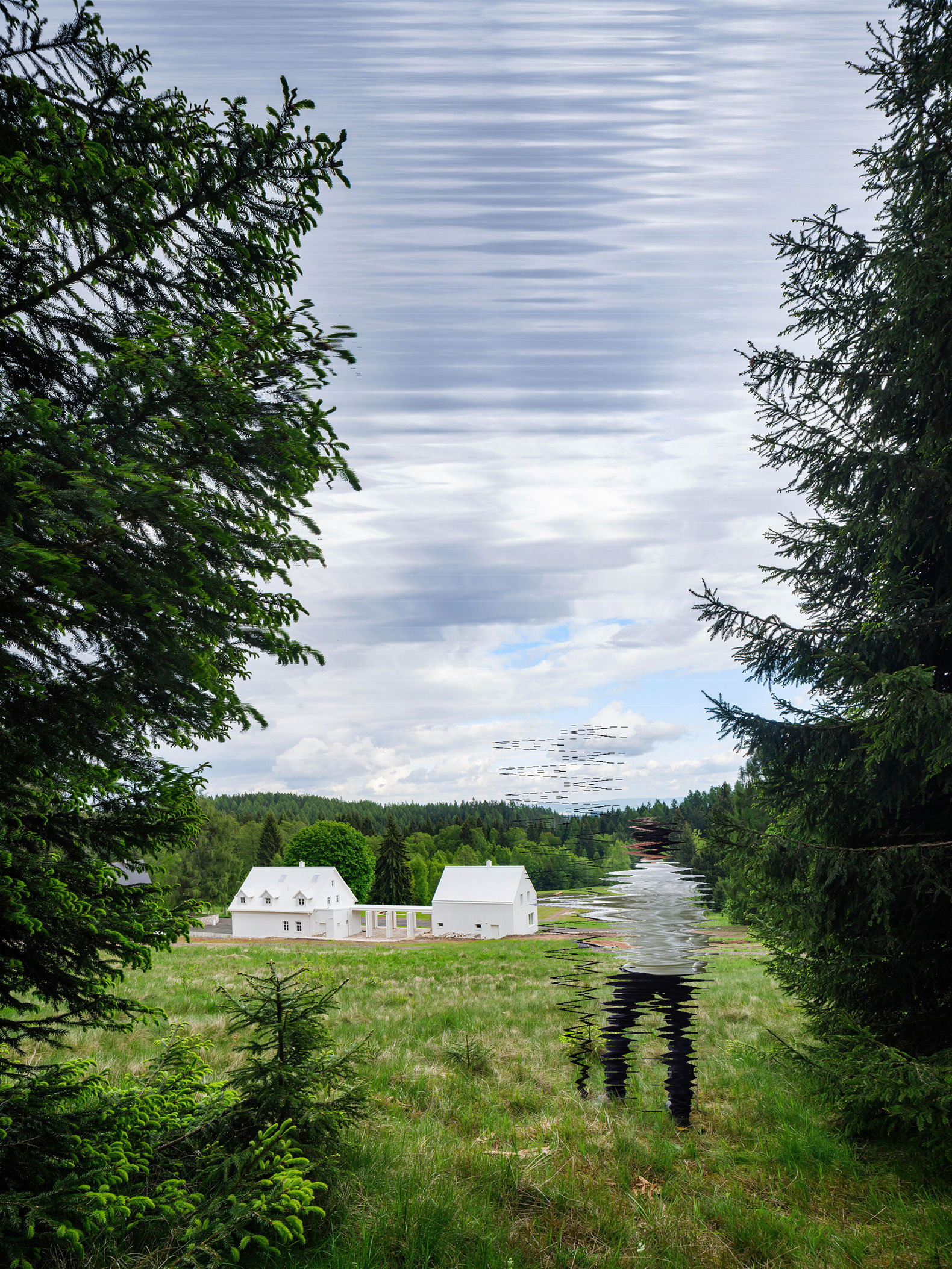 La propuesta de No Architects para la «Resurrección de los Sudetes» da un nuevo impulso a la región más pobre del país, donde se han demolido todas las construcciones dispersas para dar paso a un nuevo complejo unificado en un único volumen de un blanco impoluto, apoyado sobre una base de piedra local procedente de los Montes Metálicos. Entre el conjunto de casas, solo una granja permaneció en pie, que ahora comprende una vivienda antigua y otra nueva, conectadas por una terraza cubierta cerrable.