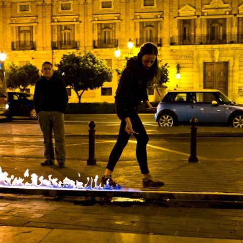 De entre las muchas actividades cabe destacar la performance inaugural a cargo de Jaime Vallaure, que nos hizo reflexionar sobre el carácter simultáneamente protector y represivo de las murallas, y la monumental intervención en la plaza de la Virgen de Monique Bastiaans, una instalación participativa que puede considerarse la primera intervención laica en esta religiosa plaza. También la de Democracia, una colección de banderas anarquistas atravesando la calle Caballeros, el mural por el cambio de Boa Mistura, la intervención de Mmmm, que cortaba el paso de una calle con una sutil membrana, el PINQ Park queer de Graham Bell o las esculturas de Trashformaciones en la Plaza de Tetuán. En esta última ubicación tuvo lugar también la acción de Laura Cazzaniga que prendió una gran línea de fuego frente la Capitanía Militar. Acompaño la acción el homenaje poético de Massimo Mazzone (Escuela Moderna/Ateneo Libertario) a la heroica Columna de Hierro de nuestra Guerra Civil, un emotivo ejercicio de memoria libertaria encuadrado dentro del área Arte contra la Ley Mordaza, pensada para explorar colectivamente los actuales límites impuestos al arte urbano por la nueva Ley de protección de la seguridad ciudadana, un exceso legislativo del actual Gobierno de España que ha sido denunciado incluso por la ONU.