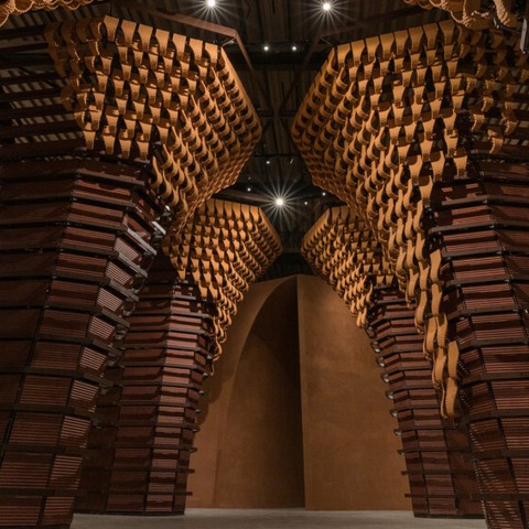 En línea con el tema de este año «El laboratorio del futuro», el Pabellón Nacional de Arabia Saudita profundiza en las cualidades tangibles e intangibles de los materiales en relación con la arquitectura saudí, ofreciendo un viaje interactivo que utiliza la noción de la tierra como punto de partida para exploración y experimentación con materia orgánica. IRTH es un proyecto de varias partes que invitará a los visitantes a experimentar la visión curatorial desde múltiples perspectivas, lo que les permitirá interactuar con la lengua vernácula de la arquitectura saudita y comprender sus componentes básicos. El proyecto tiene como objetivo presentar el diseño empírico como una ventana a lo esencial, por lo que los visitantes tendrán la oportunidad de emprender un viaje sensorial crudo que los insta a sacar sus propias conclusiones introspectivas sin prejuicios.