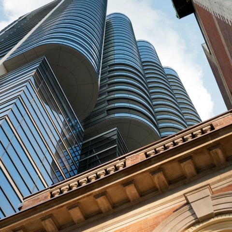 El nuevo edificio de viviendas se ubica junto al restaurado edificio Ceperley Rounsfell, que ha mantenido su configuración inicial, y junto al Royal Financial del que se ha mantenido solo su fachada adecuando su interior al nuevo proyecto. Ambos fueron construidos en la década de 1920. Las primeras 11 plantas están destinadas a oficinas y a tiendas que intentan revitalizar esta zona del centro de la ciudad. Coincidiendo con la cornisa de los edificios limítrofes el resto de las 23 plantas está dedicado a viviendas organizadas según cuatro cilindros verticales, con unas vistas espectaculares de la bahía. Las dos últimas plantas son áticos ajardinados.