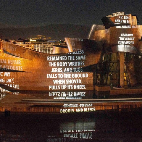 Las reflexiones, ideas, argumentos y aflicciones que Jenny Holzer ha expresado a lo largo de más de 40 años de carrera se presentarán al público a través de un amplio abanico de instalaciones, cada una de las cuales posee una evocadora dimensión social. Su medio, ya se plasme en forma de camiseta, placa, pintura o señal de leds, es el lenguaje. La difusión de textos en espacios públicos constituye un aspecto esencial de su obra, empezando en la década de 1970 con pósters pegados a escondidas por toda la ciudad de Nueva York y continuando con sus recientes proyecciones de luz sobre paisajes y arquitecturas.