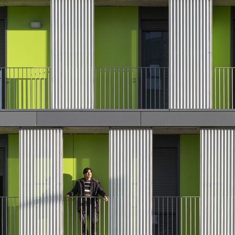 116 viviendas de protección pública por UNIA Arquitectos + FAU Arquitectos. Fotografía por Fernando Alda.