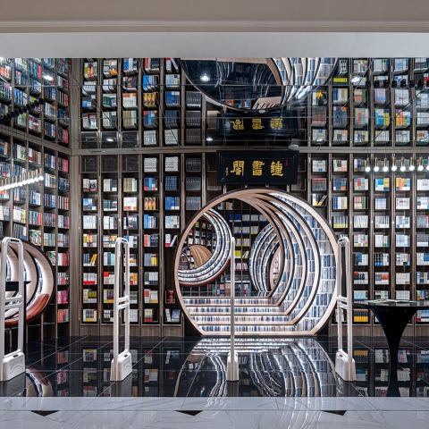 Ubicada en la comunidad de la moda, la tienda Zhongshuge Beijing Lafayette es una ventana de diálogo entre el arte clásico y la moda contemporánea. Entre lo nuevo y lo viejo, el impacto psicológico de la rotación espacial lleva a los lectores que ingresan a la librería a la cueva del Jardín de duraznos y experimentan un viaje fabuloso como un sueño.