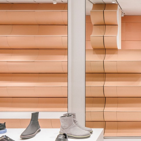 El arquitecto japonés Kengo Kuma vuelve a colaborar con Camper. Cuatro años después de presentar su primera tienda para Camper en la Via Montenapoleone, en Milán (2014), se suma asi a las propuestas de Alfredo Häberli, Benedetta Tagliabue, Jaime Hayón, Konstantin Grcic o los hermanos Bouroullec entre otros. El arquitecto ha realizado un diseño a base de piezas de cerámica curva, los productos recuperan todo el protagonismo de manera individual y se establece un vínculo singular entre la cultura cerámica del Mediterraneo y la japonesa.
