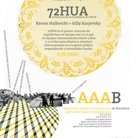 72HUA (es el primer concurso de arquitectura en tiempo real, en el que 10 equipos internacionales tienen 3 días y 3 noches para diseñar y construir intervenciones en el espacio público respondiendo a necesidades locales, y como anuncian: FOR FREE!