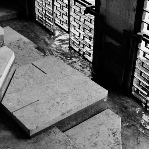 Una puerta "mimética", también en travertino, conduce a una habitación privada a la derecha de la sala. El suelo ofrece una lectura moderna de los tradicionales terrazos continuos de piedra y guijarros usado normalmente en el palazzo veneciano.