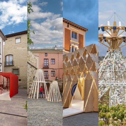 Las instalaciones para algunas de las localizaciones de Concéntrico salieron a concurso. Es el caso de la que ocupará la plaza colindante a los únicos restos a la vista de la Muralla del Revellín, obra de DP Architects de Singapur que se inspiraron en el producto estrella de esta tierra para su propuesta ganadora: un espacio homenaje al vino de Rioja a través de las cubas de madera que son magistralmente deconstruidas por los arquitectos asiáticos en duelas, anillos y aros ofreciendo una interesante experiencia sensorial.