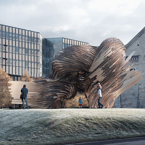 El resultado es una propuesta para un pabellón hecho de elementos de madera curvados al vapor, utilizando herramientas analógicas aumentadas con la precisión de un entorno de realidad mixta. Explora un diseño adaptativo y un sistema de fabricación que es resistente a amplias variaciones en el comportamiento del material y la precisión de la fabricación, ocupando un medio difuso que no es ni analógico ni puramente automatizado. Steampunk explora un camino para repensar las aplicaciones y tradiciones de la artesanía en pos de su evolución.