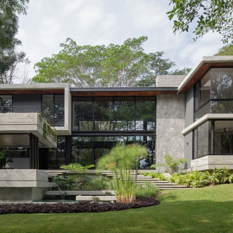 Volúmenes imponentes de concreto que entienden el relieve del sitio, se plasmaron de manera considerada, generando una serie de recorridos para circular la casa. Los trayectos creados, conceden siempre a la vegetación asomarse y consienten al usuario a ir descubriendo la residencia.