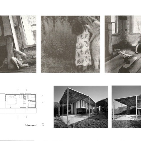 He reunido en este texto dos ejemplos de arquitectura, a los que he rodeado de tres trabajos de fotografía. Pretendo con ello constatar que la imitación y la mímesis interviene en todos ellos de manera singular pero comparable. Dado que la mímesis está siempre ahí, formando parte de proceso creativo, escogí ejemplos donde el grado de disolución en el entorno parece significativo. En tales ocasiones, la complejidad de las relaciones entre el cuerpo, la vestimenta, la arquitectura o el paisaje concluye en una especie de empate técnico. Se trata de un juego de asimilaciones recíprocas, de modo que se trabaja conjuntamente, y a su vez, se pierde parte de la integridad individual de cada uno de los agentes participantes. En consecuencia, en ese nuevo marco de intimidad, las obras resultan específicas y contingentes.
