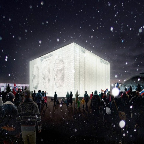 "Estamos muy contentos de compartir este video de nuestra reciente prueba del activador 1000 que forma una décima parte de la fachada del edificio cinético a todo color diseñada por Asif Khan e incorporado en su pabellón para el operador de telecomunicaciones ruso MegaFon en los Juegos Olímpicos de Invierno de Sochi 2014. El fachada del edificio está siendo desarrollada y realizada por la empresa suiza iart. es una escultura iluminada móvil que será capaz de cambiar de forma y mostrar retratos físicos de los visitantes, de los aficionados del Parque Olímpico y del deporte de todo Rusia (apertura 07 de febrero 2014). " MVRDV