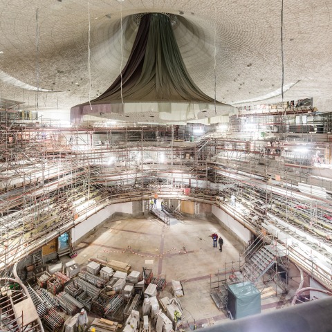 Tras la reorganización en la primavera de 2013, el proyecto avanza bien. Con el techo a prueba de lluvia desde agosto de 2012, se trabaja también en el interior. En el Gran Salón, la piel blanca y el reflector del techo se han montado y la plataforma de trabajo ha sido desmantelada. Por primera vez, la impresionante arquitectura de la sala de conciertos se ha vuelto totalmente visible. Además, las obras en la fachada de ladrillo del edificio casi se ha completado, lo que permite el desmontaje total del andamio exterior.