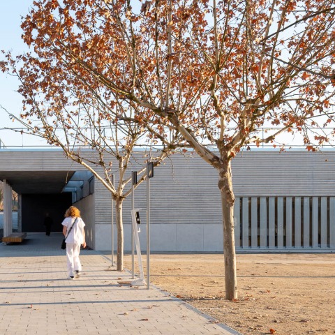 Dos patios interiores iluminan el centro del edificio, permitiendo que desde los espacios comunes y salas de espera siempre se tenga luz y vistas directas al exterior. Todas las estancias de uso continuado disponen de luz natural, y el aula de educación sanitaria se abre a un patio ajardinado y protegido de las vistas.