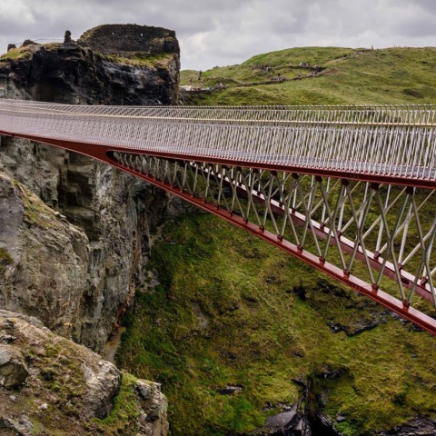 Visualmente, el enlace resalta el vacío a través de la ausencia de material en el medio del cruce. La estructura, de 4.5 m de altura donde brota de la superficie de la roca, se estrecha a un grosor de 170 mm en el centro, con una junta clara entre las mitades del continente y la isla. La estrecha brecha entre ellos representa la transición entre el continente y la isla, el presente y el pasado, lo conocido y lo desconocido, la realidad y la leyenda; todas las cosas que hacen que Tintagel sea tan especial y fascinante.