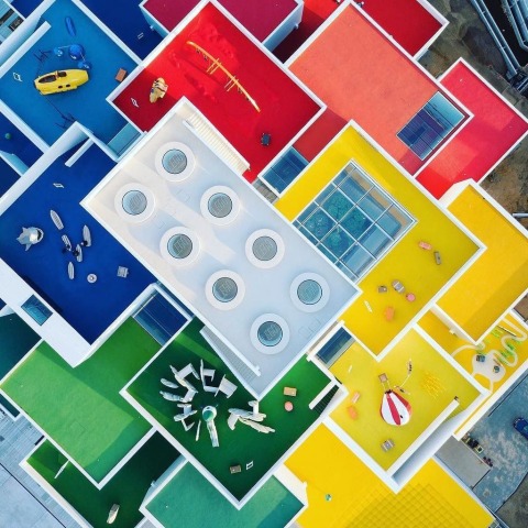 LEGO House es un edificio que consta de 21 ladrillos blancos apilados uno encima del otro, coronados por un ladrillo LEGO de 2x4 de gran tamaño, llamado Keystone. Los enormes ladrillos no sólo crean espacio para actividades interiores, sino también para un espacio público protegido y una serie de terrazas y patios de juegos interconectados para que los huéspedes puedan explorar y disfrutar.