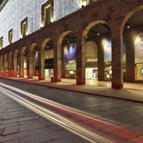 En Milán, la instalación ocupa los grandes ventanales-escaparates de la tienda, jugando con el concepto de la luz y refracción con un "pequeño sol".