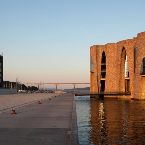 Al levantarse del agua, Fjordenhus genera una nueva y sorprendente conexión entre Vejle Fjord y el centro de la ciudad de Vejle, uno de los prósperos centros económicos de la península de Jutlandia. A medida que uno se mueve desde la estación de tren hacia el puerto, Fjordenhus aparece a través de la amplia plaza de Havneøen, un área residencial y comercial de uso mixto en desarrollo. Desde aquí, los residentes y visitantes pueden acceder a la planta baja de Fjordenhus a través de una pasarela peatonal o pasear por el embarcadero diseñado por el arquitecto paisajista Günther Vogt.