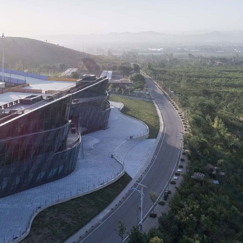 A una escala grande, el sitio está ubicado en la cresta sur de la montaña de Yunmen. La pista es la única característica artificial visible contra el telón de fondo de la montaña naturalmente oscura, mientras que la mayor parte del bulto arquitectónico se esconde debajo de la pista, que termina a 12 metros sobre el camino de acceso. En estos 12 metros, el centro de servicio de la estación de esquí se abre a la misma carretera de acceso, dando la bienvenida a los visitantes y manteniendo los espacios de apoyo fuera de la visión de los esquiadores, que pueden centrarse en la pista en sí, mientras disfrutan de las vistas de la naturaleza.