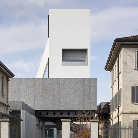 Cuando se presentó la Fondazione Prada en mayo de 2015, la torre con una altura de nueve pisos y 60 metros, diseñada por Rem Koolhaas, todavía estaba en construcción. Ahora terminada, la torre es uno de los tres nuevos edificios que caracterizan el complejo de Fondazione Prada, en la antigua destilería de ginebra que data de la década de 1910. El edificio de hormigón blanco se convertirá en un hito reconocible para la Fondazione, que se revela en el horizonte urbano de Milán, mientras que al mismo tiempo enmarca una vista sin precedentes de la ciudad a través de sus grandes ventanales.