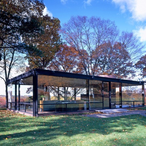 La Glass House fue construida por Philip Johnson en lo alto de una colina en New Canaan, Connecticut, como su propia casa de fin de semana. Conocida como paradigma de transparencia y minimalismo, la casa se terminó en 1949, y el arquitecto vivió allí desde entonces hasta que murió en 2005.
