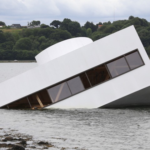 De entre estas propuestas con el tema "Flooded Modernity" de Asmund Havsteen-Mikkelsen muestra una replica parcial de la conocida Le Corbusier’s Villa Savoye Villa Savoye de Le Corbusier varada en el fiordo danés de Vejle Fjord.