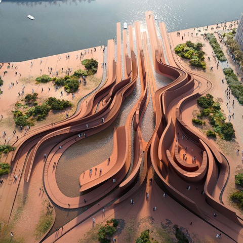 LAND-MARK destaca la supremacía tecnológica innovadora de Dubai al incorporar nuevas técnicas de construcción en un contexto social y urbano. La plaza aspira a ser una intervención icónica dentro del puerto de Dubai Creek, entrelazando maravillas sociales, naturales y tecnológicas que abarcan la identidad de la ciudad.