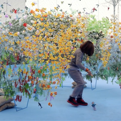 La estructura se compone de 6.000 elementos colgantes, los cuales son pequeños y coloridos juguetes pensados para despertar el deseo y la nostalgia en las personas de distintas edades.