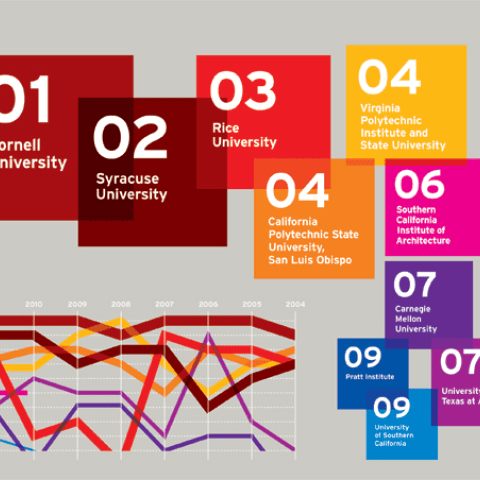 A continuación se puede encontrar el ranking completo dividido en las siguientes categorías: análisis y planificación, comunicación, aplicaciones informáticas, los métodos y materiales de construcción, diseño de la investigación, la teoría y las prácticas de diseño sostenible y los principios con los que se ve en la Architectural Record.