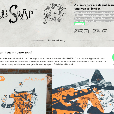 Let’s Swap es una compañía en cuya nueva Web se ofrece el intercambio de comisariado para gente creativa. Funciona de la siguiente manera: Hay un intercambio de funciones. Si lo deseas, pulsa el botón Swap y propón lo que quieres intercambiar. El artista invitado escoge su intercambio favorito y le publican allí. ¡Así de sencillo!