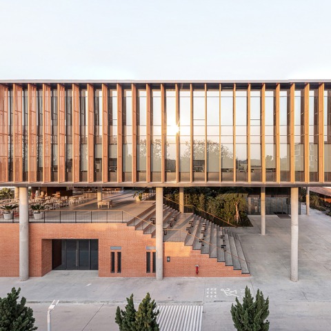 El programa se divide en dos, espacio formal e informal, ocupando la mayor parte del espacio la zona de oficinas. Los materiales locales como el ladrillo vernacular se aplica tanto a la parte exterior como a la interior del edificio.