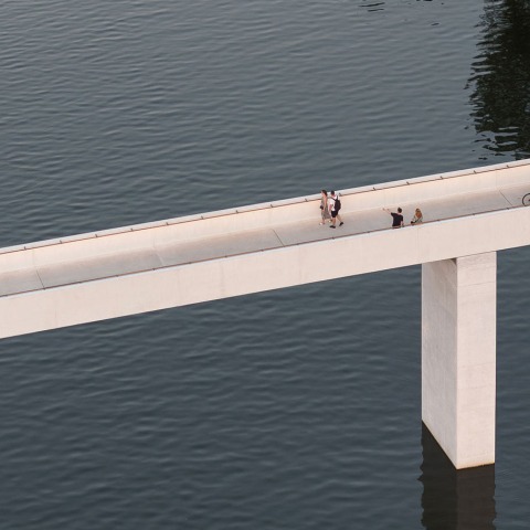 Pasarela peatonal de Štvanice por Atelier Bridge Structures + Blank architekti. Fotografía de Alex Shoots Edificios.
