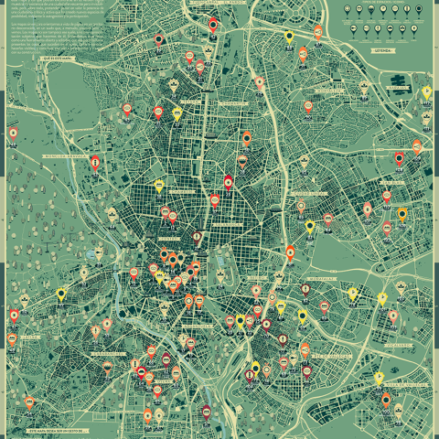 * Podrás encontrar la versión en gran formato del mapa en Intermediae Matadero, espacio que acoge también los encuentros abiertos sobre ciudadanía activa y otras formas de hacer ciudad. Si necesitas más información escribe a: LOSMADRILES@AAVVMADRID.ORG o visita la web de INTERMEDIAE.