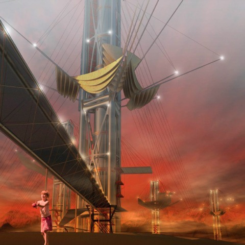 Colgando de las torres hay un sistema de velas solares, que se pueden desplegar para mejorar el efecto Venturi en el sistema, calentando el aire con la radiación solar, y aumentando la diferencia de presión de aire entre las torres y los túneles.