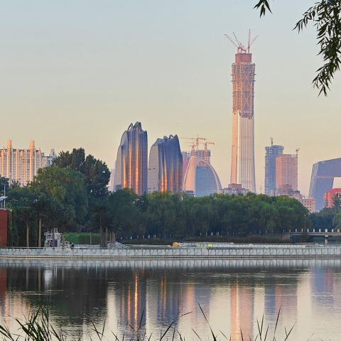 Situado en el extremo sur del Parque Chaoyang de Pekín, el parque más grande que queda en el distrito central de negocios de Pekín, el complejo de 220.000 metros cuadrados incluye 10 edificios que se despliegan como una pintura clásica de Shanshui a escala urbana. Tener una posición y función similar a Central Park en Manhattan, pero a diferencia de los modernos edificios en forma de caja que solo crean una separación entre el parque y la ciudad, "Chaoyang Park Plaza" es una expansión de la naturaleza. Es una extensión del parque hacia la ciudad, naturalizando el fuerte perfil artificial del CBD, tomando prestados paisajes de un paisaje lejano, un enfoque clásico de la arquitectura de jardín china, donde la naturaleza y la arquitectura se combinan entre sí.