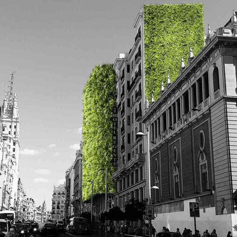 A medida que las ciudades se enfrentan al aumento de la densidad de población y la escasez de espacio en la planta baja, Madrid + Natural pone de relieve la importancia de la infraestructura urbana verde como una forma de proteger los edificios de las fluctuaciones térmicas y climáticas extremas. Mientras las fachadas verdes y la infraestructura vertical independiente a gran escala pueden mejorar la calidad del aire y la acústica, las cubiertas sostenibles pueden aumentar la eficiencia de los paneles fotovoltaicos mediante la reducción de la temperatura ambiente, proporcionando una bajada de temperaturas y creando un hábitat para la biodiversidad. Ideas de bajo coste como cubiertas pintadas de blanco es otra forma sencilla de reducir el consumo energético de los edificios durante los meses más cálidos, reflejando hasta el 90% de la luz solar recibida.