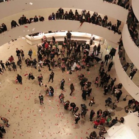 Aljazeera America. 31 de marzo de 2014. "Guggenheim protesters 'make it rain' to highlight poor labor practices".