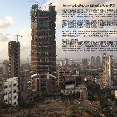 La base de este proyecto es un estudio en profundidad de la densidad de población de Mumbai. No sólo la cartografía de las infames condiciones de Mumbai en términos abstractos, sino de la introducción de una nueva metodología que mejor representa la experiencia sobre el terreno. El nuevo indicador, denominado Índice de Población Stacked (SPI), mide la densidad de personas por la cantidad de superficie de suelo disponible. De pronto, la verdadera extensiones de los asentamientos informales de Mumbai se puede determinar: un bosque amarillo de densidades altísimas cubre todo el paisaje urbano. La dura realidad, la ciudad tiene capacidad para dos tercios de su población con menos de una cuarta parte de su superficie residencial, y sin embargo, los planes urbanos de Mumbai en su mayoría ignoran su existencia.