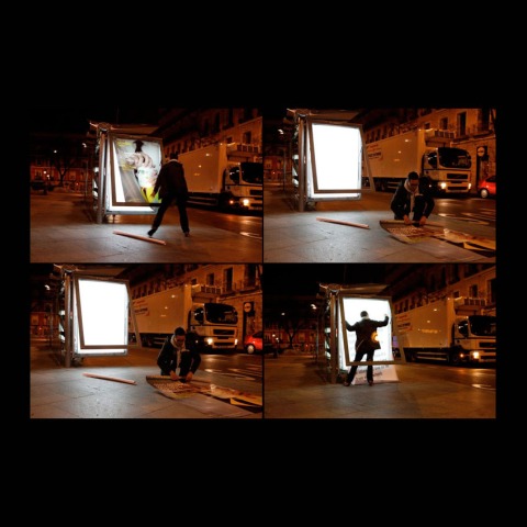 La acción tuvo lugar el pasado 30 de marzo, 106 marquesinas de autobuses fueron intervenidas en cuatro puntos neurálgicos de la ciudad de Madrid: los alrededores de Sol, el intercambiador de Príncipe Pío, la plaza de Cuatro Caminos y el Paseo del Prado.