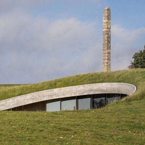 El paisaje de Skamlingsbanken se creó durante la última edad de hielo y ofrece una naturaleza rica y variada caracterizada por colinas ondulantes y grandes prados, y el contexto paisajístico ha sido la principal inspiración para el diseño del centro de visitantes. Al elevar el paisaje junto con dos cortes circulares, el espacio de exhibición se convierte en una sutil inserción en el paisaje en forma de una colina suavemente curvada.
