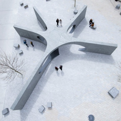 Ubicado en el campus de MIT en honor al oficial Sean Collier, quien fue asesinado por unos disparos el 18 de abril de 2013, Collier Memorial marca el lugar de la tragedia con una estructura atemporal: traduce la frase "Collier Strong" en un espacio de recuerdo a través de una forma que encarna El concepto de fuerza a través de la unidad. El monumento está compuesto por treinta y dos bloques sólidos de granito que forman una bóveda de piedra de cinco direcciones. Cada bloque se apoya en el otro para crear un espacio central cubierto para la reflexión. Inspirada por el gesto de una mano abierta, la bóveda de piedra poco profunda del monumento está reforzada por cinco paredes radiales, que se extienden hacia el campus. El espacio ovoide en el centro de las paredes radiales se crea un pasaje, un marcador y una abertura que replantea el sitio.