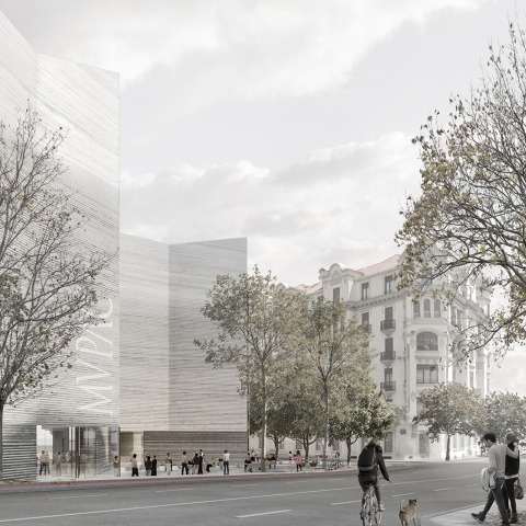 Surge una nueva geometría, un nuevo volumen que abarca el extenso programa de manera eficiente y responde a las condiciones del contexto, con un solo objetivo: "hacer la ciudad" en los cuatro frentes. Para esto, se propone un sistema de bares o bahías urbanas. Un sistema que dialoga con el grano medio del medio ambiente. Un sistema que, sin renunciar a la singularidad o gran presencia que tendría una nueva forma, es sensible a las diferentes condiciones del contexto. Horizontalmente, las bahías cambian la alineación relativa a sus respectivos frentes de calles para acomodar espacios urbanos representativos y amigables que ofrecen accesos claros y diferenciados a ambos, al museo y al espacio administrativo. Verticalmente, el nuevo edificio es capaz de dar continuidad en la sección al escalonar la altura de los bares urbanos "en una dinámica creciente". Este asombroso también permite una quinta fachada, "el techo" como un nuevo espacio público habitable que favorece el uso de las vistas únicas del lugar.